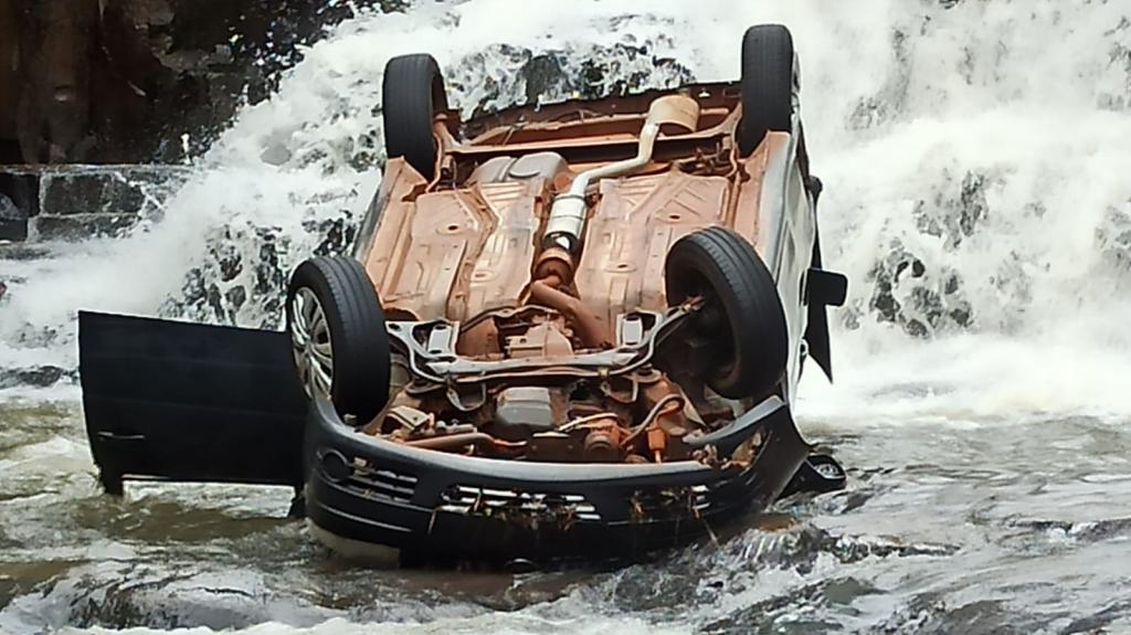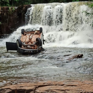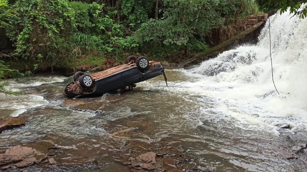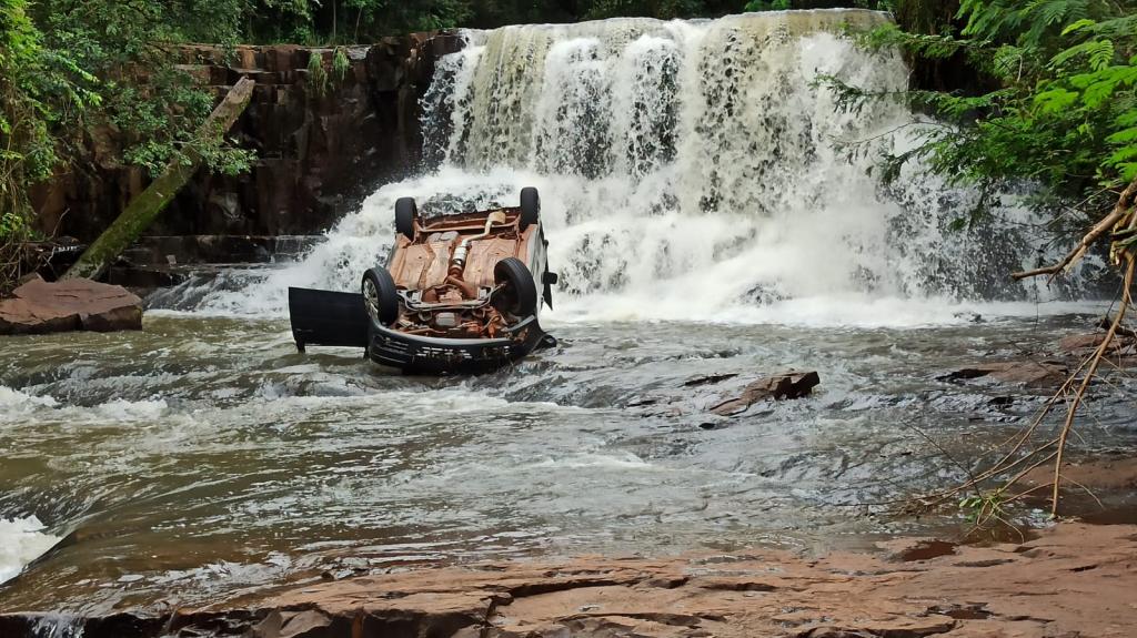 No final da tarde de quinta-feira o Volkswagen Saveiro com placas de Toledo foi arrastado pela correnteza e caiu na cachoeira parando aproximadamente a 8 metros abaixo.