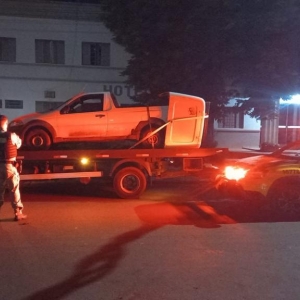 A equipe policial se deslocou rapidamente até o local informado e, após buscas, localizou o veículo. No entanto, a carga que estava no automóvel no momento do roubo não foi encontrada, assim como alguns equipamentos que foram furtados. A capota traseira da caçamba estava arrancada e foi localizada próxima ao veículo.