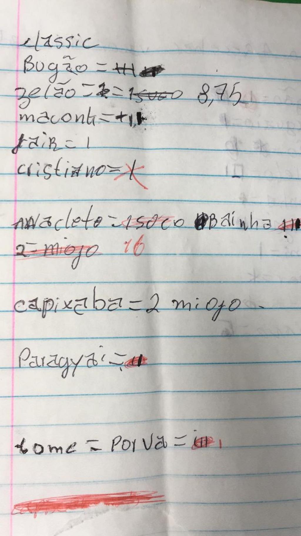 Anotações apreendidas durante a operação indicam também que os presos pagavam para que os agentes fizessem compras e levassem produtos como chocolate, comida e até bebidas alcoólicas para a carceragem.