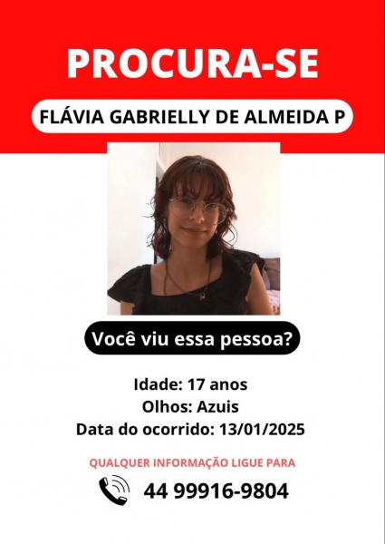 Flávia Gabriely de Almeida, 17, ainda está desaparecida. São 20 dias desde a última vez que foi vista em Jesuítas, no Oeste do Paraná.