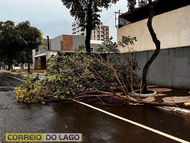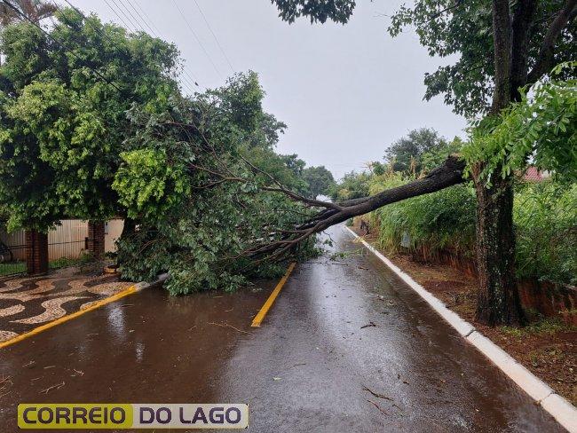 Na entrada do bairro Jardim Ipê, na rua das Américas, uma árvore caiu e bloqueou a via, interditando o acesso ao bairro. Além disso, cabos de energia e postes foram danificados, interrompendo o fornecimento de energia elétrica em partes da cidade.