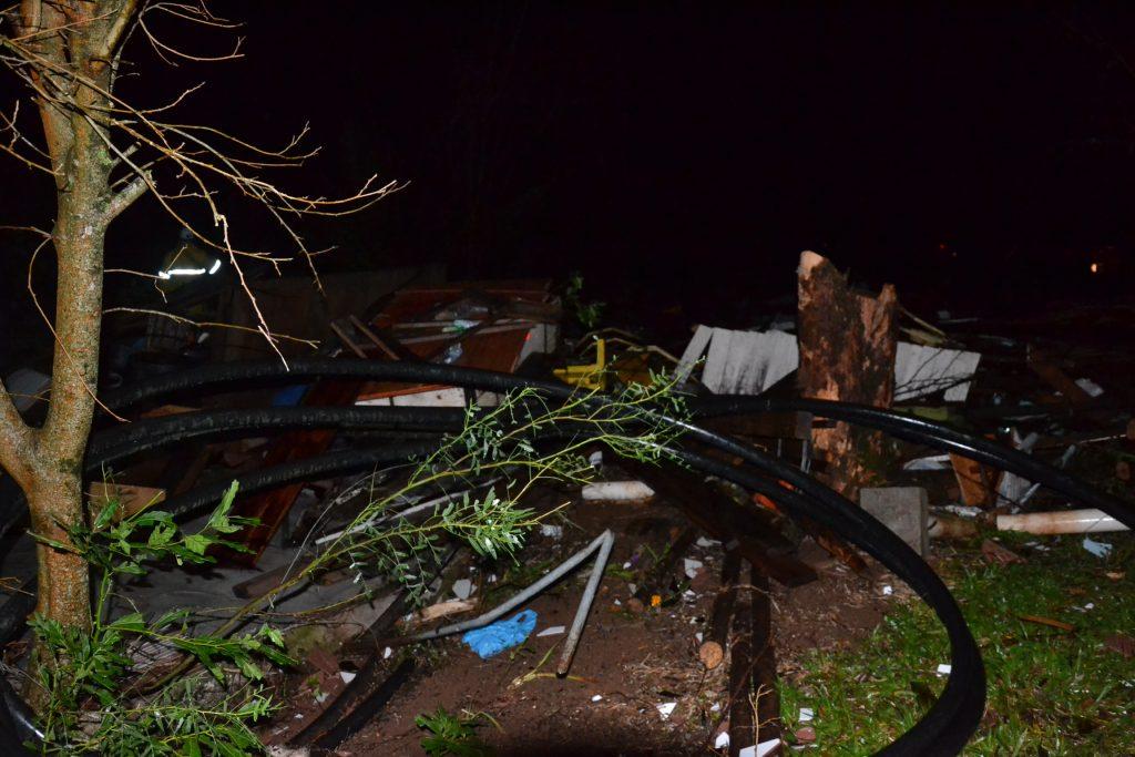 Na rodovia pedações de zinco retorcido, fios de alta tensão caídos ao chão, galhos e folhas ficaram espalhados pela pista. Na residência ao lado da rodovia que ficou totalmente destruída não foi encontrado ninguém nas dependências, socorristas do SAMU e Brigada Militar realizaram buscas pelos escombros mas não encontraram pessoas, não se sabe ao certo se tinha ou não pessoas na casa no momento do fato, na manhã desta terça-feira será possível ter um melhor conhecimento sobre o caso onde se terá uma ideia mais ampla de todos os estragos, ficando mais visível a cena de destruição causado pelo possível tornado que passou pelo local.