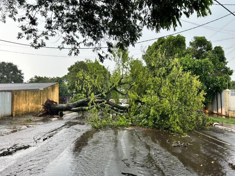 O Município de Guaíra registrou, na tarde de ontem (30), a passagem de um forte vento acompanhado de chuva intensa, que provocou a queda de árvores e galhos em diversas vias da cidade, além de interrupções no fornecimento de energia elétrica em alguns pontos do município.