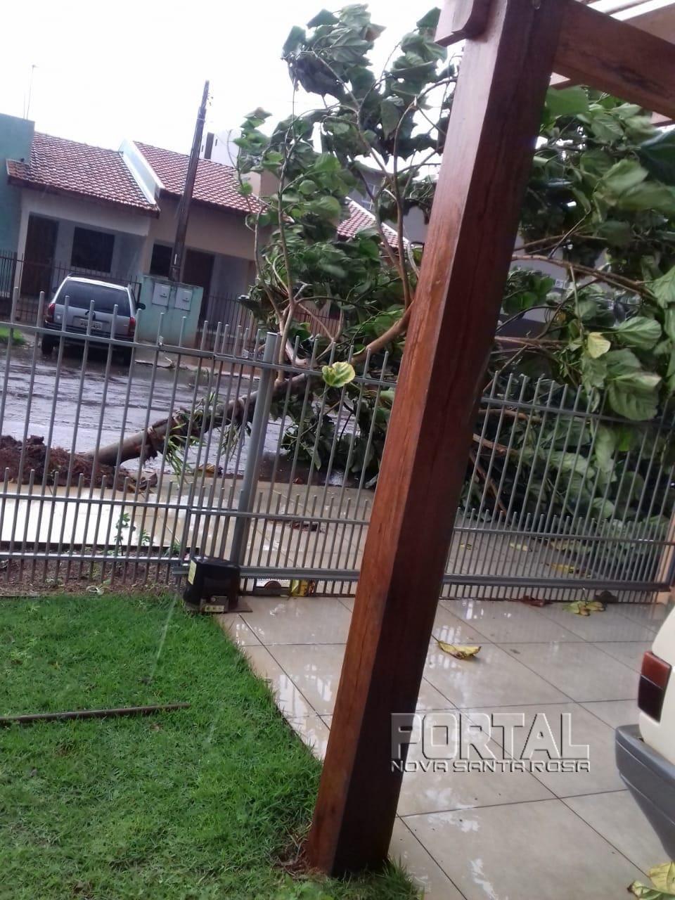 Pelo menos duas árvores caíram com a força dos ventos no final da tarde desta quarta-feira (19), no Bairro Osvaldo Cruz em Palotina.