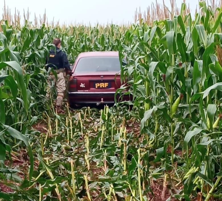 Depois, em um determinado momento, o criminoso entrou em uma plantação de milho, abandonou o carro e fugiu a pé.