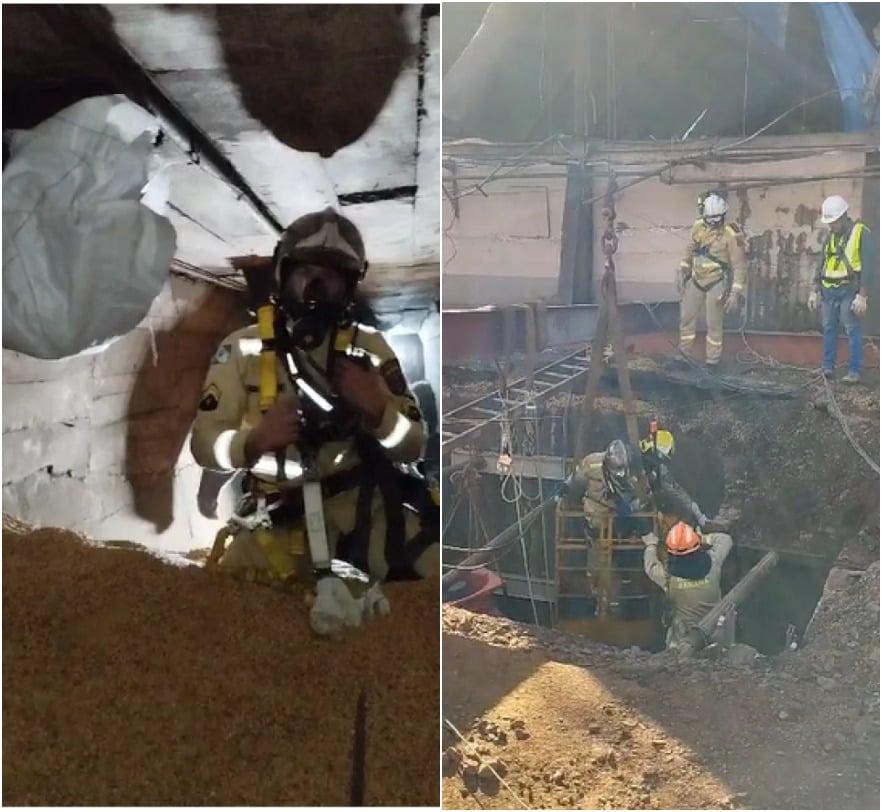 O Corpo de Bombeiros disponibilizou imagens das equipes de socorro em túnel de grãos em cooperativa de Palotina após explosão em buscas pelas vítimas desaparecidas.