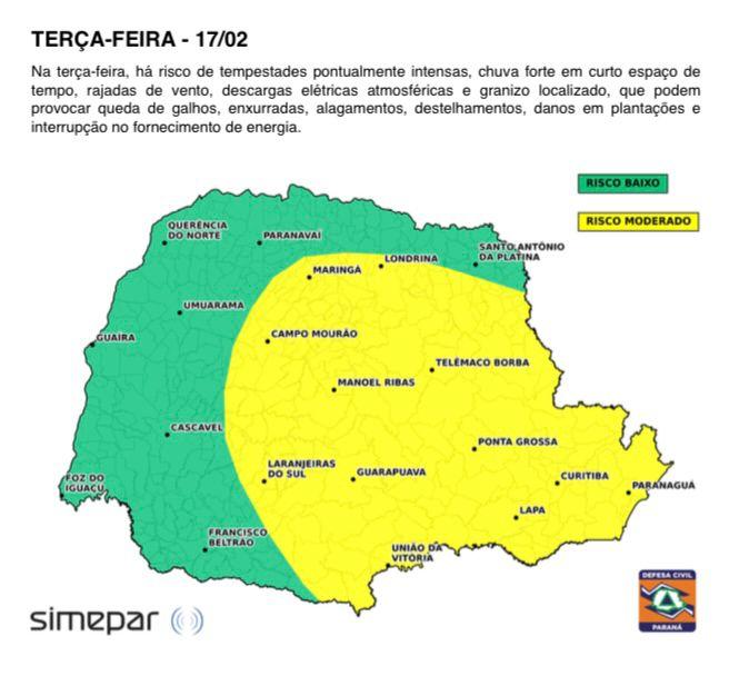 De acordo com a especialista, sistemas em altitude estão contribuindo para manter a atmosfera relativamente menos instável nessas áreas, em comparação com o Centro-Leste do Estado. Ao mesmo tempo, áreas de baixa pressão próximas à costa e a formação de um novo sistema sobre países vizinhos, prevista para o fim da semana, devem manter a umidade elevada.