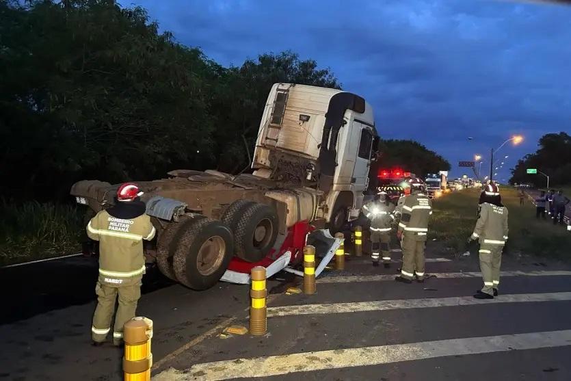 Um caminhoneiro, de 46 anos, morreu em um grave acidente ocorrido na manhã desta terça-feira (18), na PR-323, em Umuarama. A vítima conduzia um caminhão prancha carregando uma carreta que, em frente à Baterax, se desprendeu do veículo e “atropelou” a cabine do motorista.