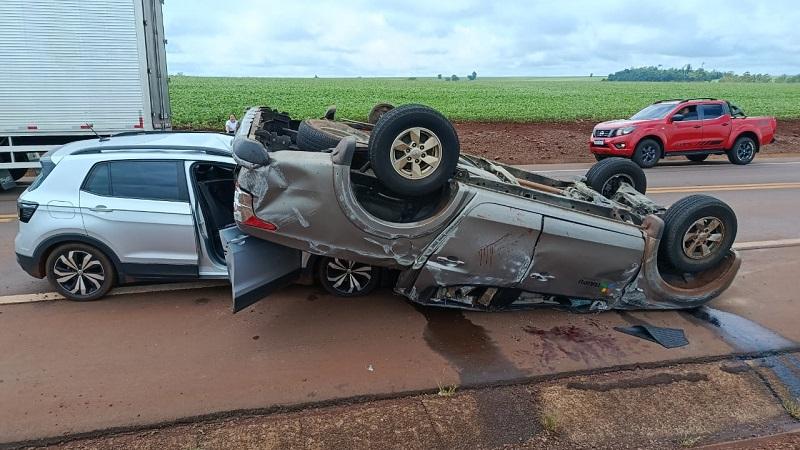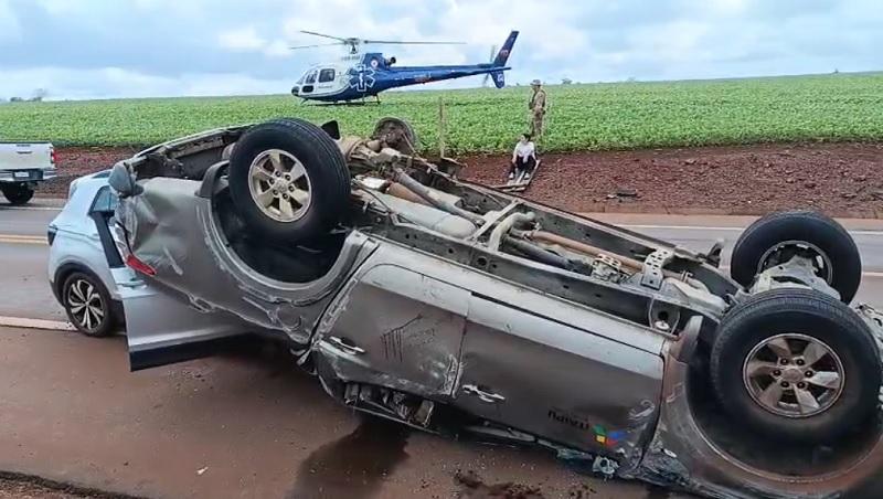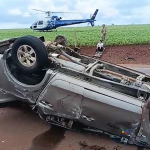 Durante a perseguição, já nas proximidades do trevo de Tupãssi, o motorista perdeu o controle da caminhonete, que capotou e acabou parando sobre o T-Cross que seguia no sentido contrário.