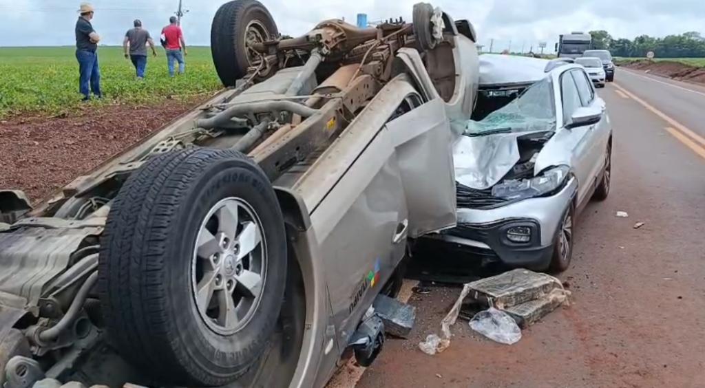 Um grave acidente de trânsito foi registrado na manhã desta segunda-feira (03) na PR-239, rodovia que liga Toledo a Assis Chateaubriand, cerca de mil metros após o trevo de acesso ao município de Tupãssi. O acidente envolveu uma caminhonete Mitsubishi L200, carregada com maconha, e um VW T-Cross ocupado por uma família de Assis Chateaubriand.