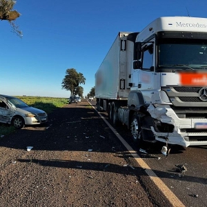 Na manhã desta terça-feira (12), um acidente envolvendo um automóvel Chevrolet Astra e uma carreta foi registrado na rodovia PR-182, no trecho entre os distritos de Vila Candeia e Pérola Independente, entre Maripá e Toledo.