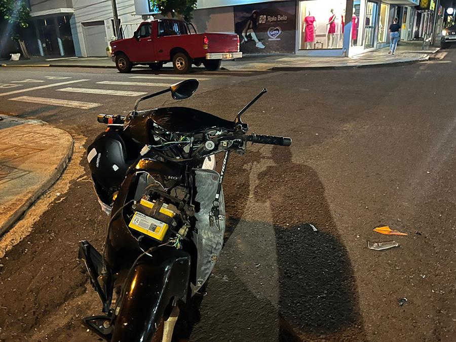 Um motociclista ficou ferido após uma colisão frontal registrada na noite de domingo (15), na região central de Nova Santa Rosa. O acidente ocorreu no cruzamento da Avenida Horizontina com a Rua 3 de Maio e mobilizou a ambulância do município.