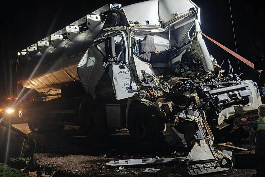 Um caminhão de ração bateu na traseira de outro caminhão que estava parado nas proximidades da esmagadora da C.Vale, em Palotina, na noite de segunda-feira (23). O impacto deixou o motorista preso às ferragens, exigindo mobilização imediata das equipes de socorro.