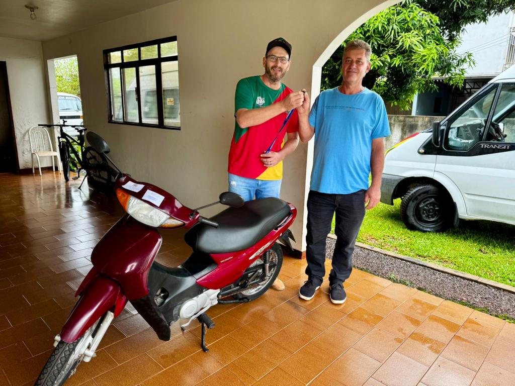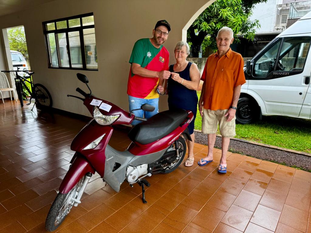 Já a segunda moto, uma Honda Biz 125cc, ano 2007, teve como destino a cidade de Chiapeta, no Rio Grande do Sul, com a ganhadora Nair Kessler, que está a passeio em Nova Santa Rosa, realizou compras na loja e começou 2026 da melhor forma possível.