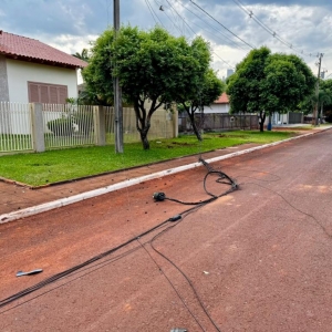 A situação foi percebida logo nas primeiras horas da manhã. A principal suspeita é de que um veículo de grande porte tenha passado pelo local durante a madrugada ou no início da manhã e acabou enroscando na fiação instalada sobre a rua, arrancando parte dos cabos.