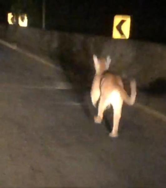 As imagens, feitas por um homem em um carro, mostram o felino correndo pela ponte, em direção à margem. Após sair da ponte, a onça parda adentra uma mata.