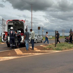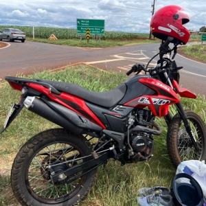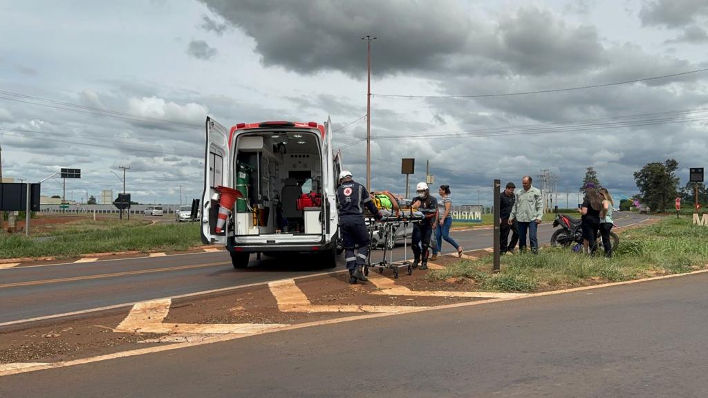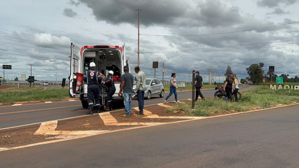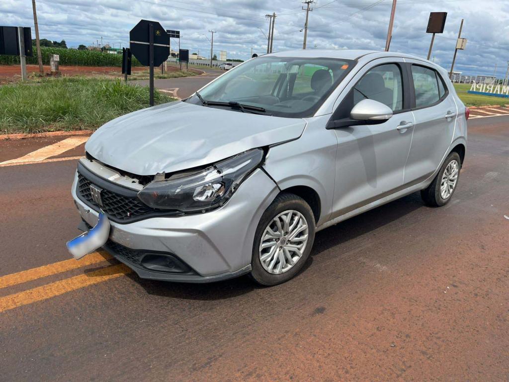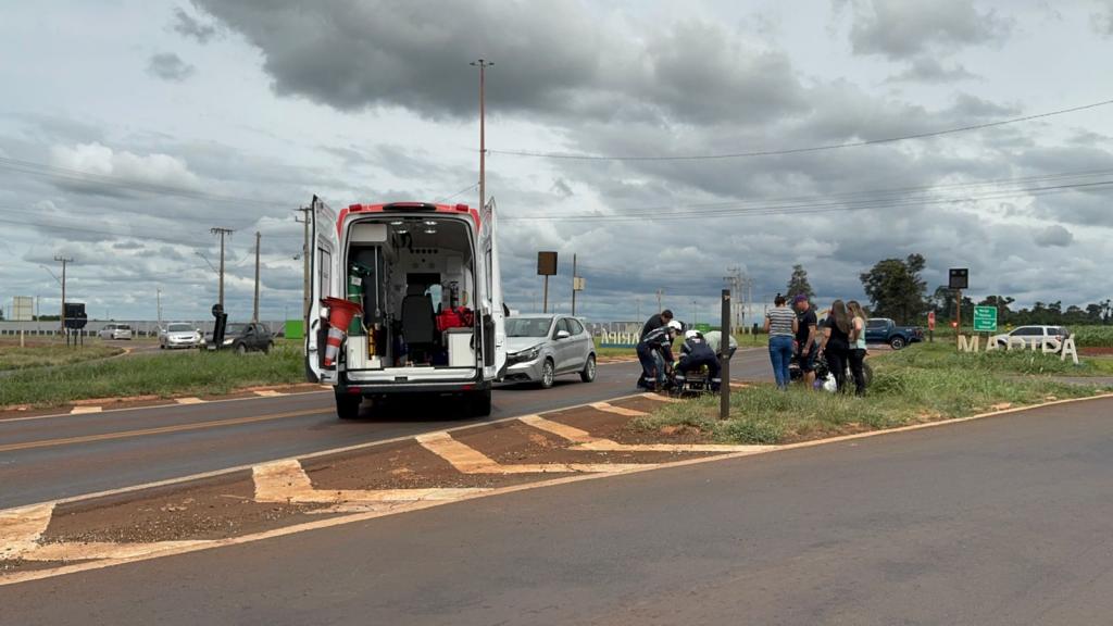 Um acidente envolvendo um carro e uma moto deixou um homem – de nacionalidade paraguaia - ferido no início da tarde desta segunda-feira (9), no trevo de acesso ao município de Maripá, na rodovia PR-182.