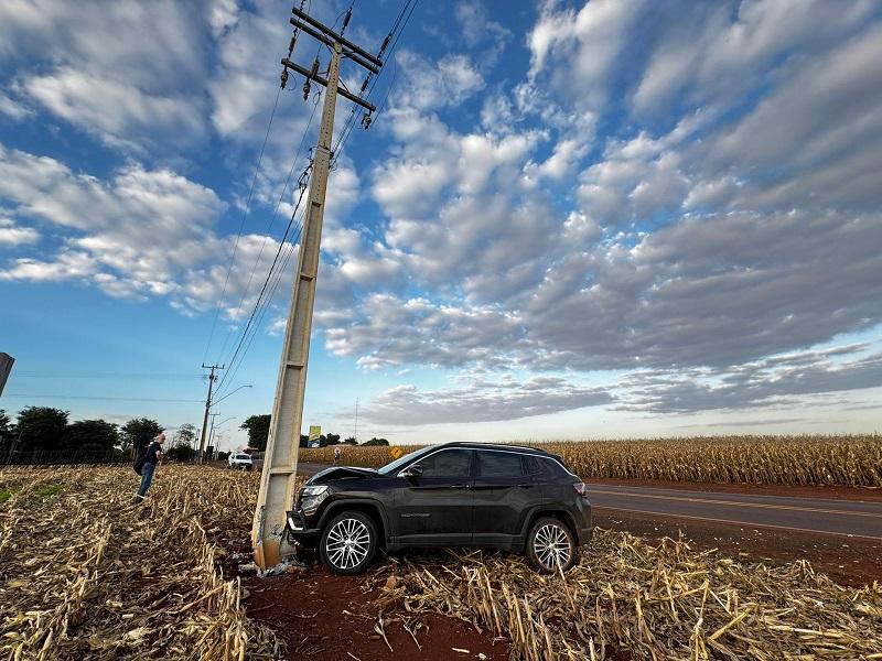 Um Jeep Compass ocupado por dois homens, residentes em Santa Catarina, colidiu contra um poste recentemente instalado em uma curva conhecida por sua dificuldade, na estrada que liga Nova Santa Rosa a Maripá, PR 491 em Novo Blumenau. O acidente aconteceu no final da tarde desta quarta-feira (09), no trecho onde muitos motoristas que não conhecem a via acabam se surpreendendo com a curva acentuada.