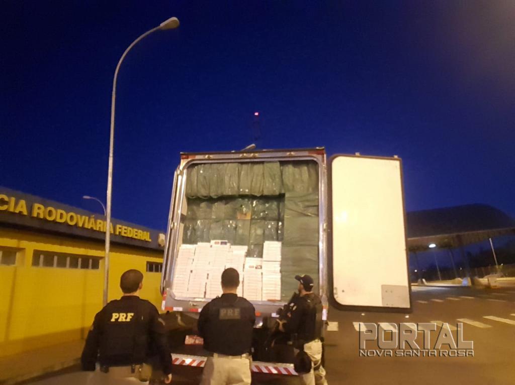 A Polícia Rodoviária Federal (PRF) apreendeu, no início da manhã de quinta (6), em Terra Roxa, cerca de 400 mil carteiras de cigarros contrabandeados, avaliados em cerca de 2,2 milhões de reais. O motorista, que foi preso por contrabando e falsificação, disse que os cigarros seriam entregues no Rio de Janeiro.
