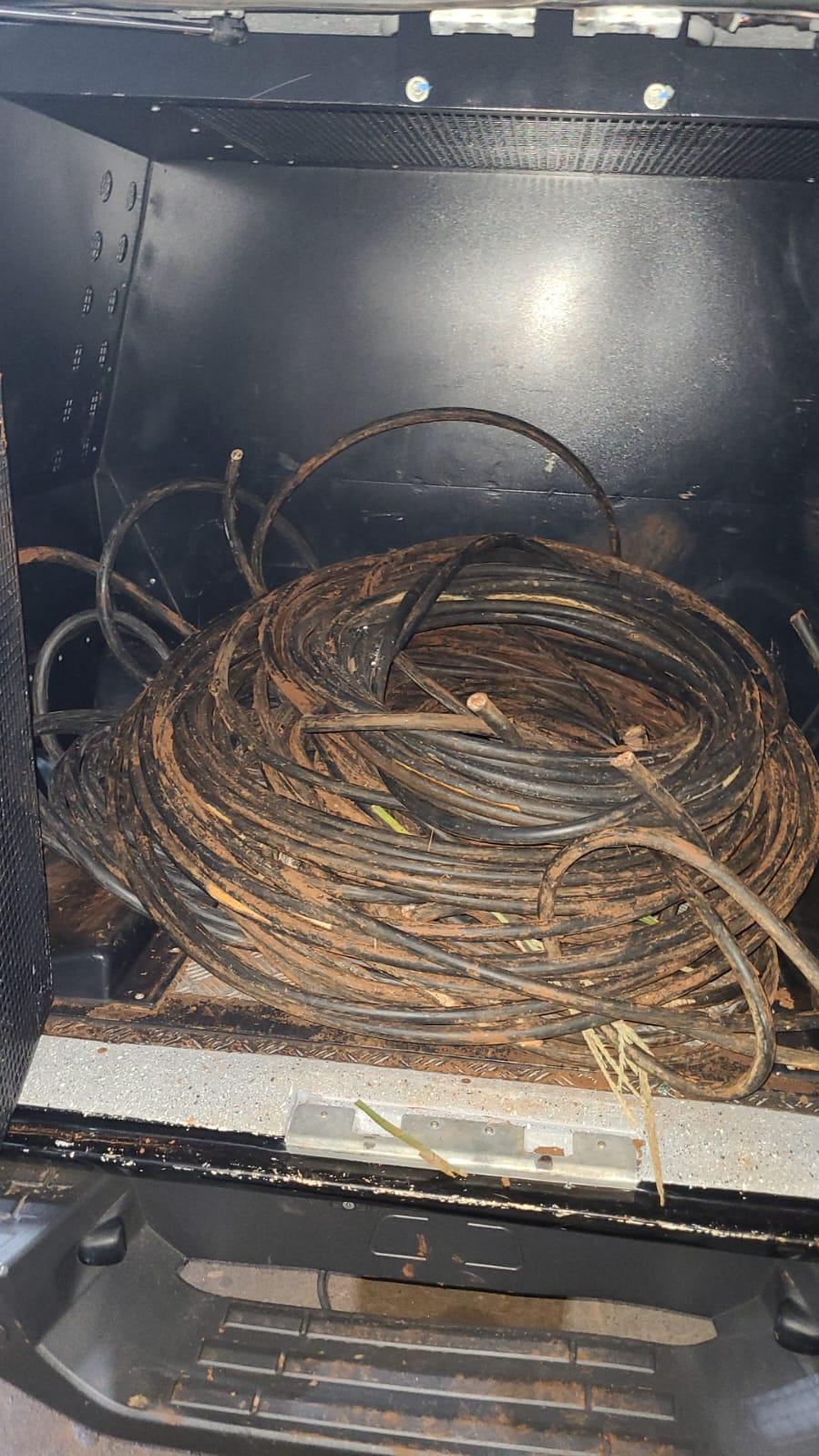 Com eles, foram encontrados aproximadamente 400 metros de cabeamento de cobre, de diversos diâmetros, avaliados em cerca de R$ 100 mil.