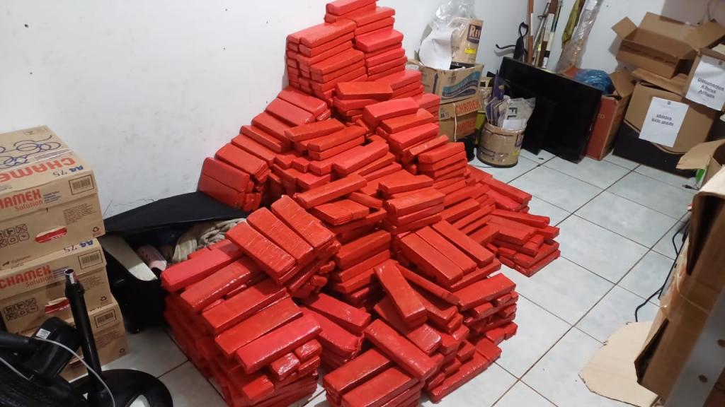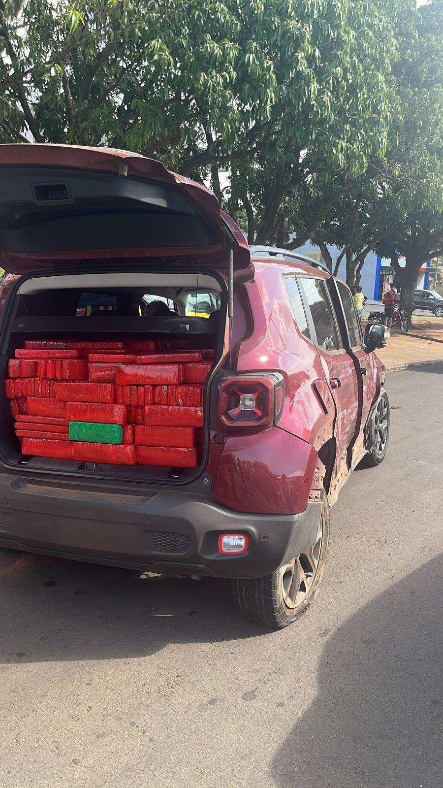 No interior do veículo foram encontrados quase meia tonelada de maconha.