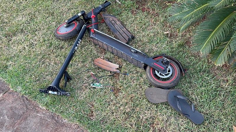 Um menino de 9 anos ficou ferido no final da tarde desta quinta-feira (14) após se envolver em um acidente entre um patinete e um automóvel Gol na esquina da Rua Boa Vista com a Rua 3 de Maio, em Nova Santa Rosa.