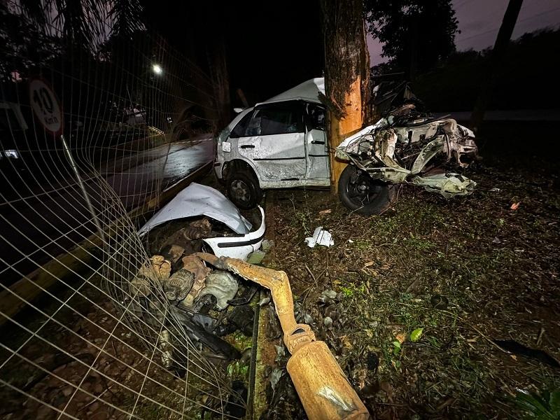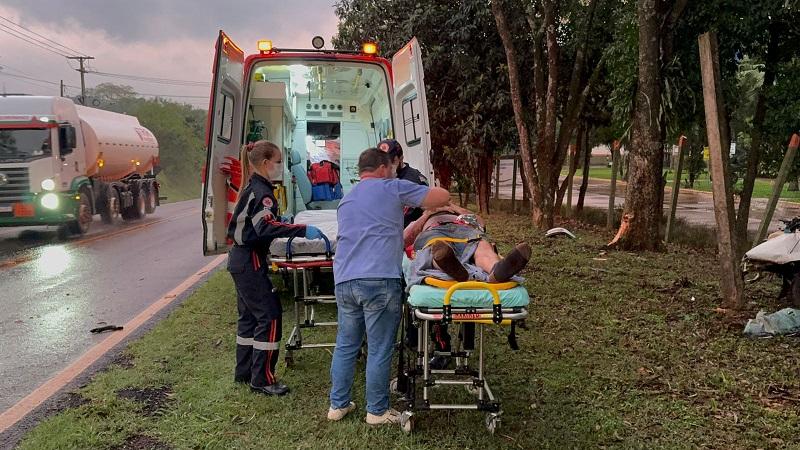 Bruno Pirrmattei Santiago de 34 anos, morador de Nova Santa Rosa, vítima do acidente na PR 491 em Novo Três Passos, distrito rondonense foi encaminhado para a UPA em Marechal Cândido Rondon na noite de ontem após o carro que ele conduzia, um Gol, bater violentamente em uma árvore em frente a Fecularia Horizonte.