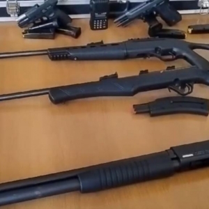 Em revista ao local do crime foram localizadas diversas armas de fogo e munições intactas, sendo 2 pistolas calibre 9mm, 2 rifles calibre 17mm e 22mm, uma espingarda calibre 12 e diversas munições de vários calibres, bem como facas um colete modular e um rádio comunicador.