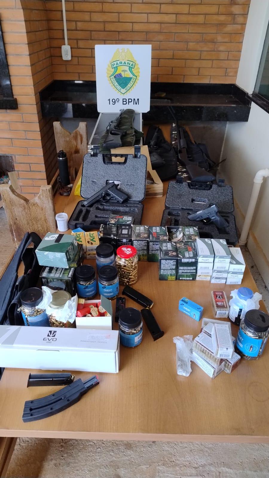 Diante dos fatos, as armas, munições e outros objetos ilícitos foram apreendidos e encaminhados com a vítima aos procedimentos cabíveis.