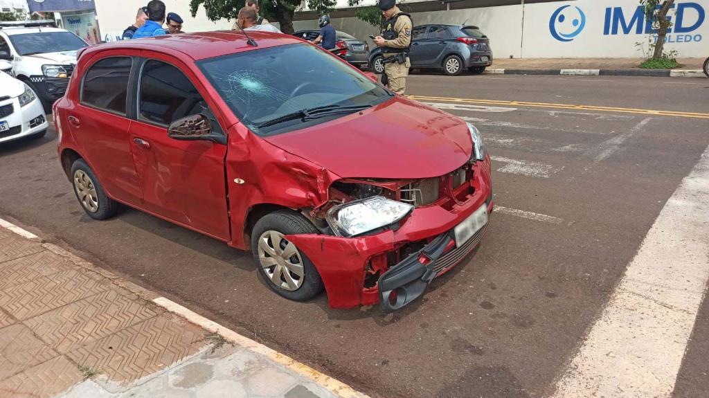Uma mulher foi socorrida pelo Corpo de Bombeiros em Toledo, após se envolver em um acidente no centro da cidade, nesta tarde de quinta-feira (19).