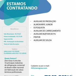 Se você está interessado em fazer parte de nossa equipe e contribuir para o sucesso contínuo da Zero Grau, envie seu currículo para rh5@zerograu.com ou entre em contato pelo número 45 99828-5333.